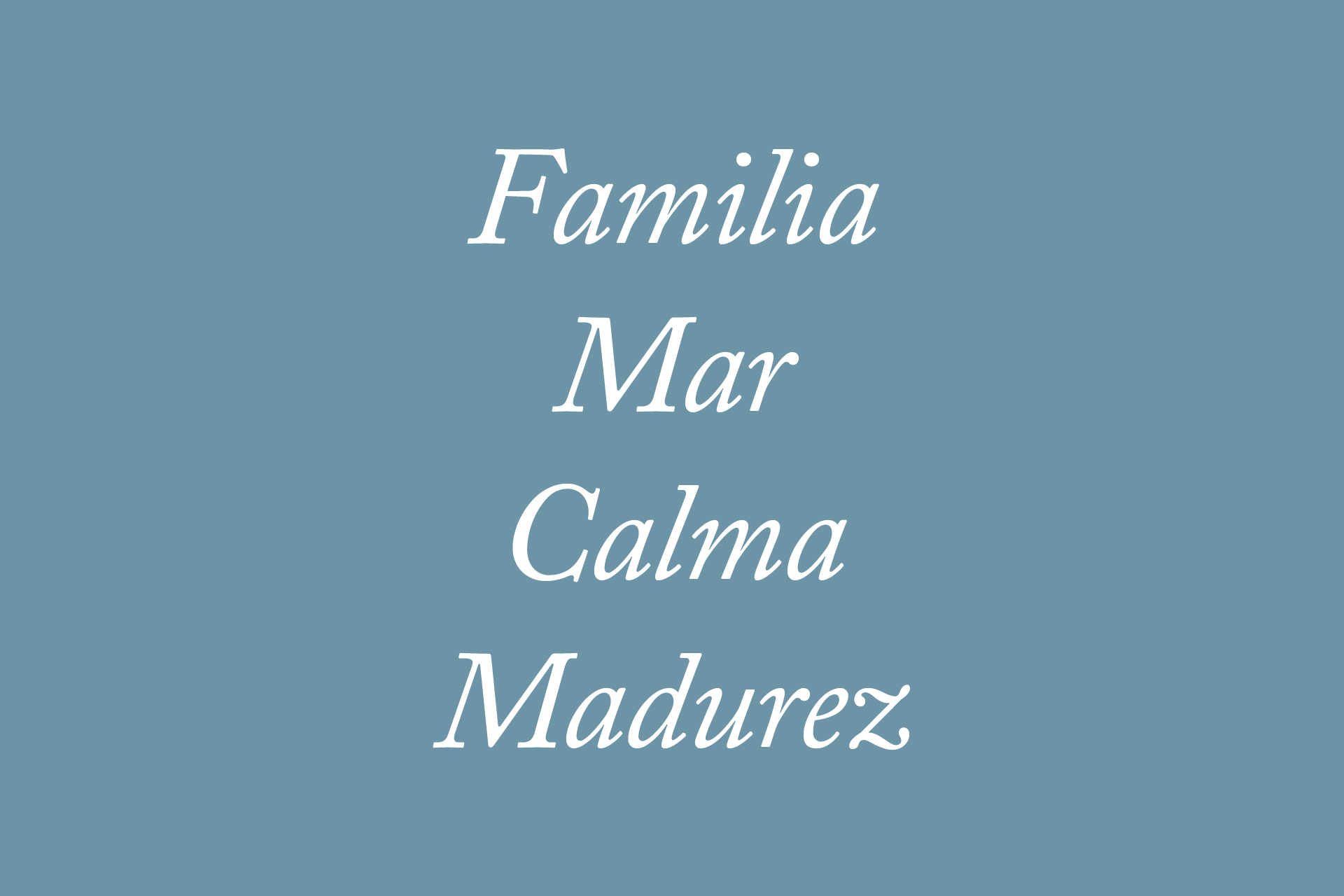 Se define una paleta desaturada de base marina que refuerza un tono natural y alejado de lo festivo convencional. A nivel tipográfico, se combina una sans serif en caja alta, utilizada para estructurar la información, con una serif clásica en cursiva que introduce contraste y permite enfatizar contenidos.