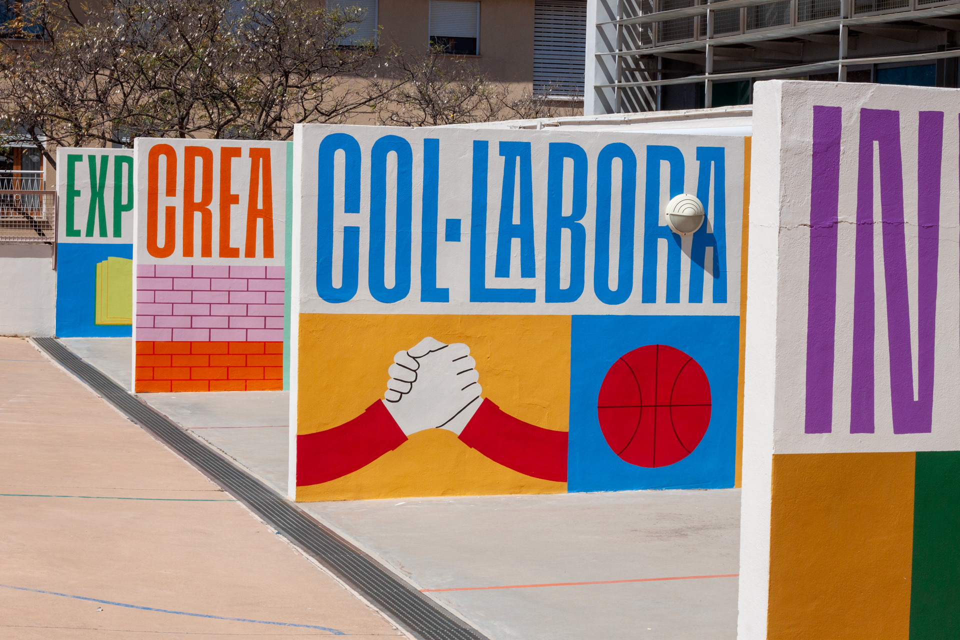 A partir de esta idea, el mural se plantea como una pieza abierta a interpretación, donde letras, formas y color se entrelazan generando una composición dinámica y casi abstracta. Más que una lectura literal, la intervención busca transmitir una actitud y una energía vinculada al equipo.