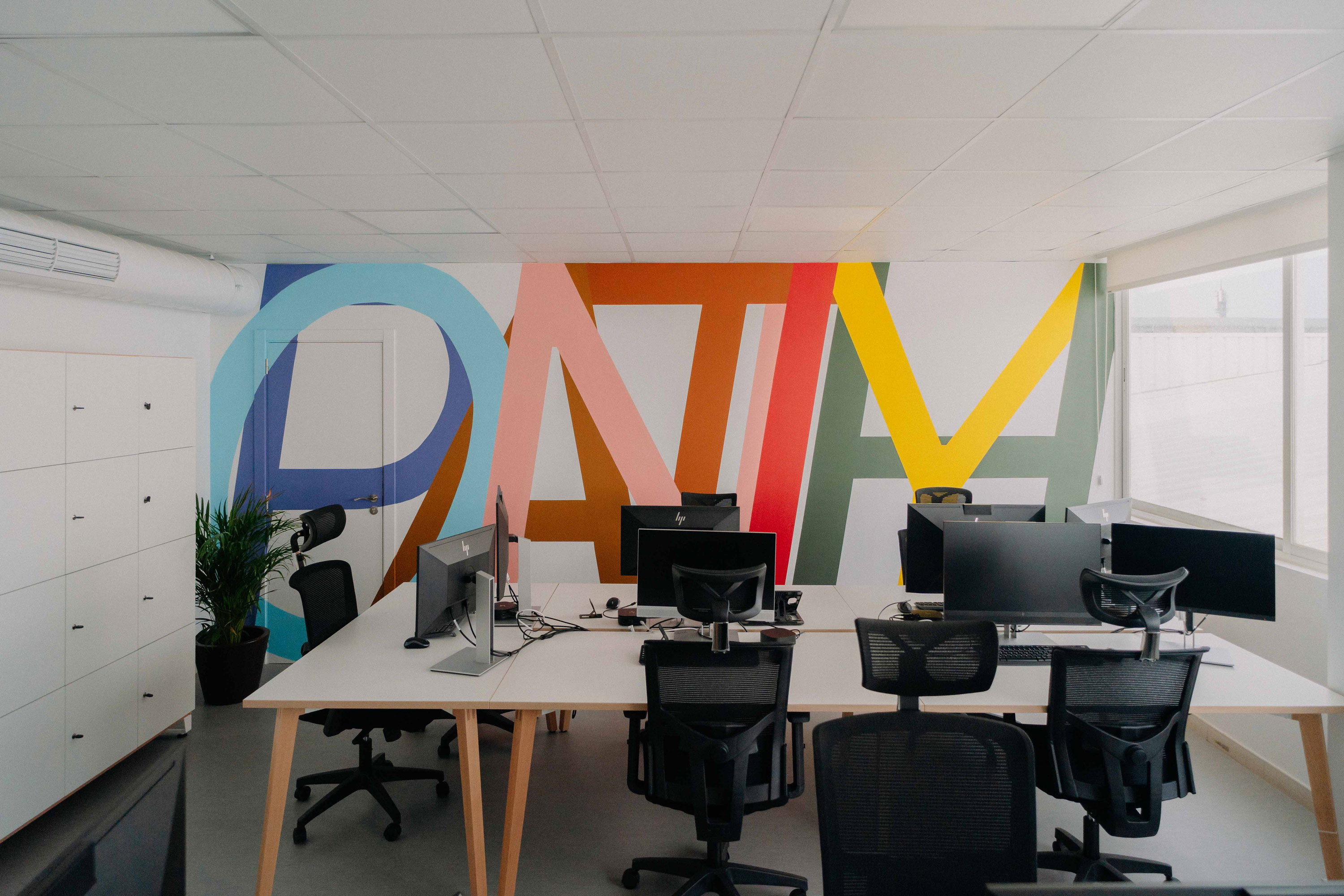 El resultado es una pieza que traduce un concepto interno en una presencia visual constante, formando parte del entorno y la dinámica del equipo.